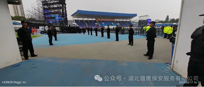 2024年3月17日,“夢(mèng)之藍(lán)M6+群星演唱會(huì)”在襄陽(yáng)體育場(chǎng)激情開唱。湖北獵鷹保安服務(wù)有限公司在市公安局的領(lǐng)導(dǎo)下,共計(jì)組織800余名..安保員參加安保任務(wù),傾力守護(hù)現(xiàn)場(chǎng)秩序,圓滿完成此次演唱會(huì)的安保任務(wù)